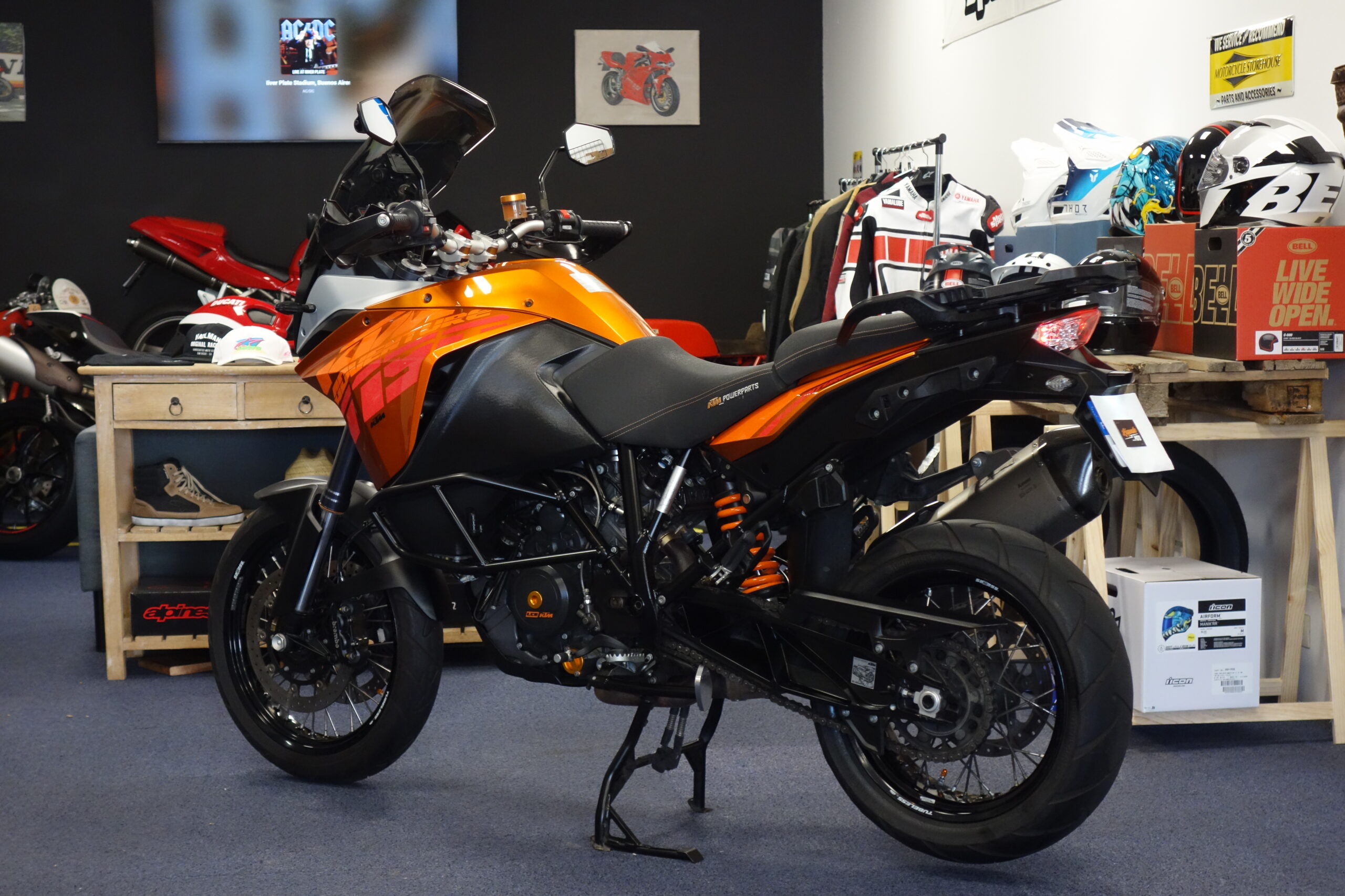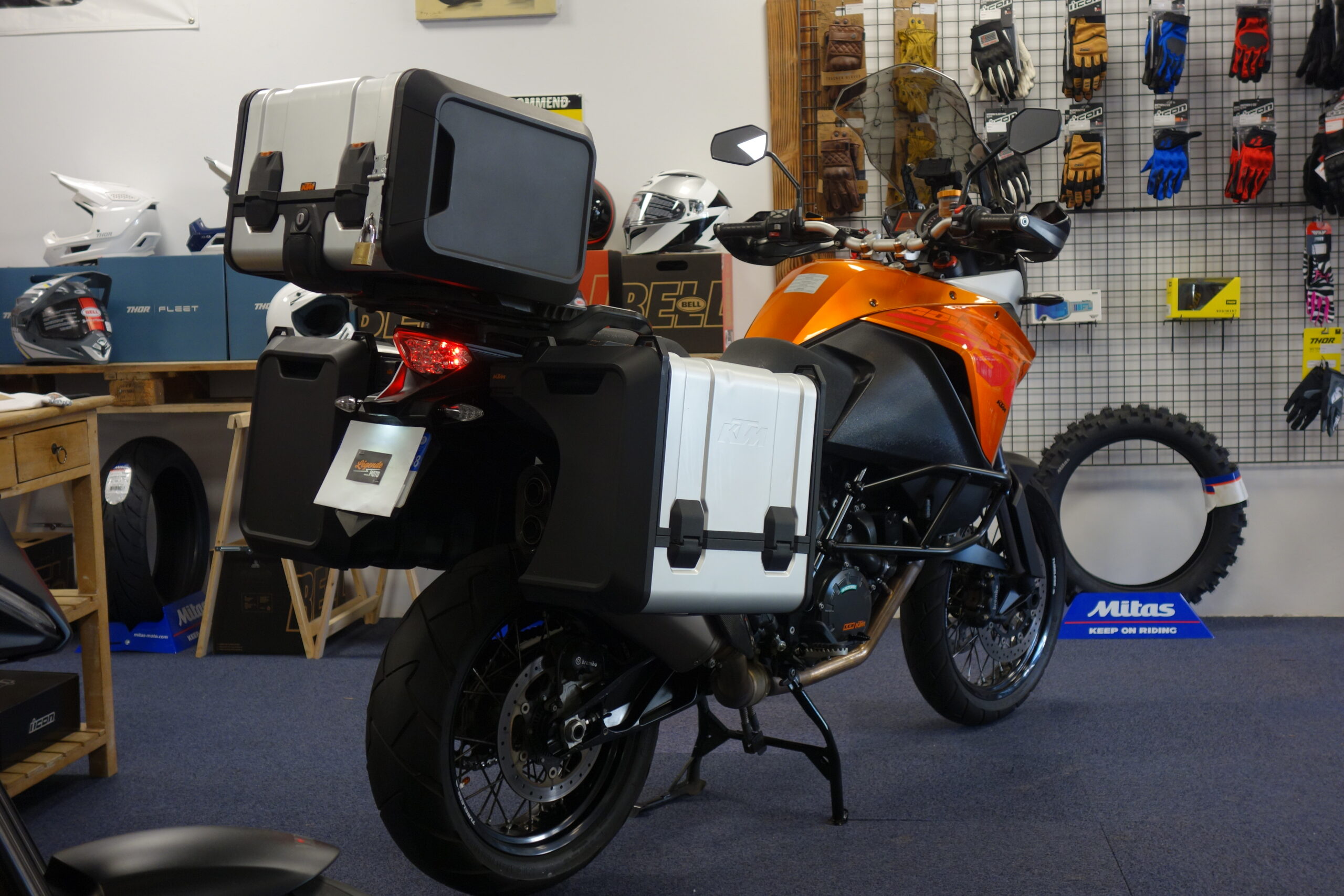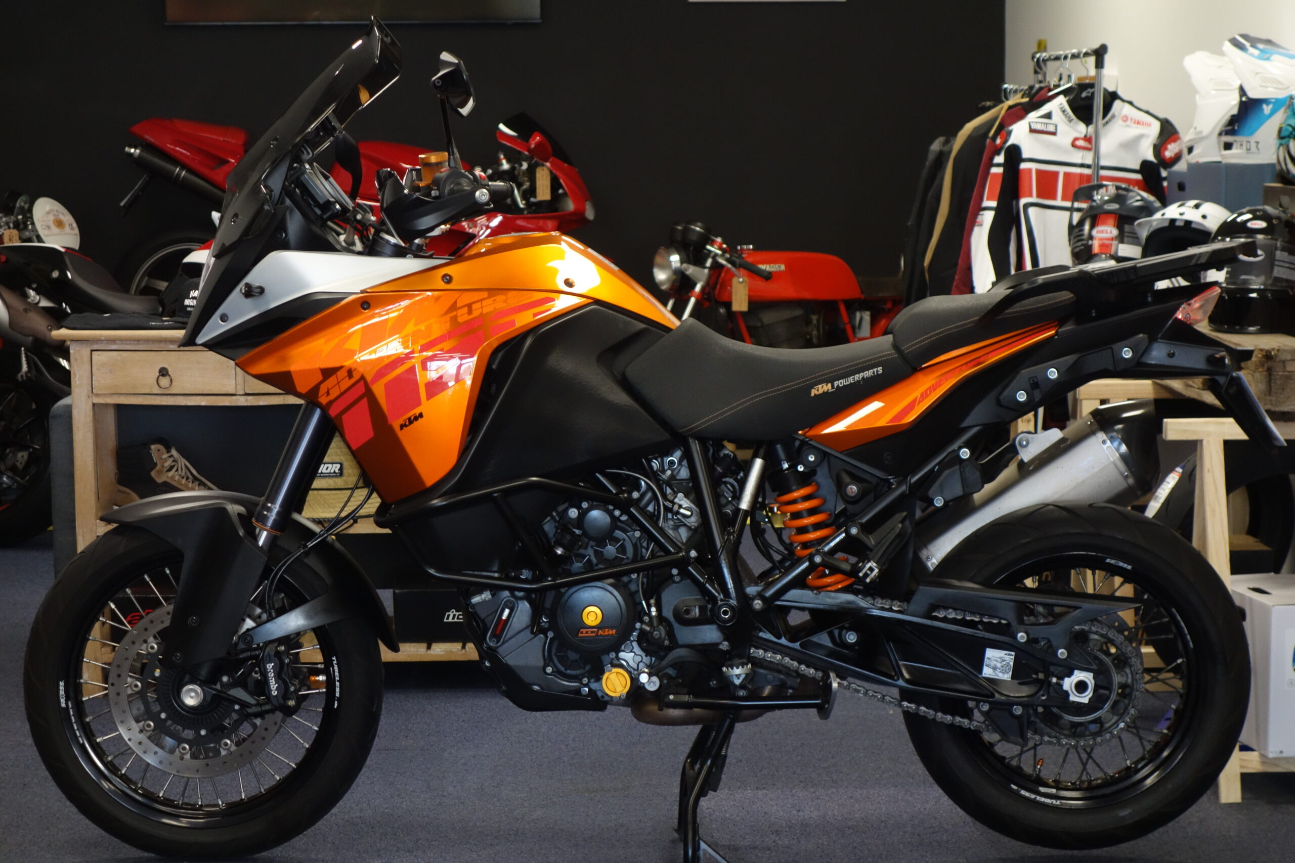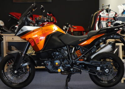 Révisée et contrôlée dans notre atelier, cette KTM 1190 Adventure suréquipée est prête à prendre la route avec sa belle teinte orange métallisé.
